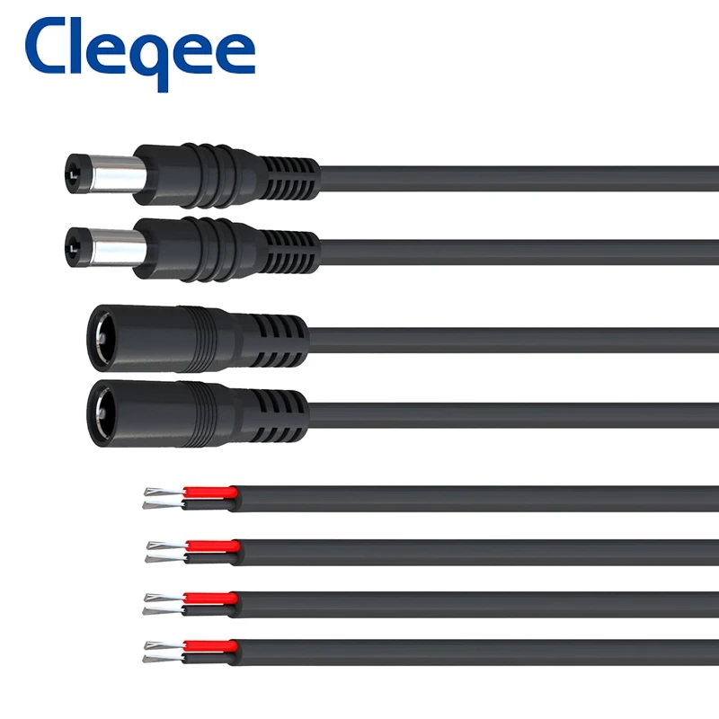 Cleqee 5pairs 5.5x2.1 DC Male Plug or Female Connector to Bare Wire Open End Cable For LED Strip Light Repaire, DC Power Supply