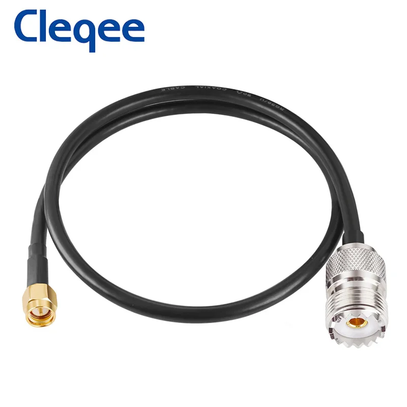 Cleqee T10001 UHF SO239 Female PL259 to SMA Male Plug Crimp Adapter RG58 Cable Jumper Pigtail 1m Length