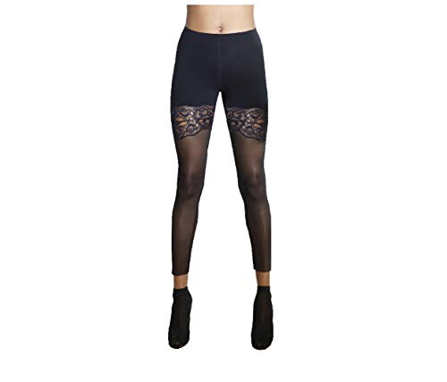Clessidra Leggins Donna con Inserti Tulle e Pizzo - Viscosa - Art.Paola (Nero, L)