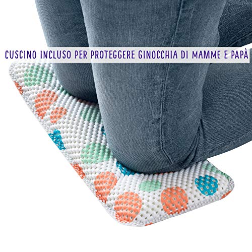 CUSCINO INCLUSO - Ideato per proteggere e sostenere le ginocchia di mamma e papà sul pavimento durante il bagno e i momenti di svago di bambini e neonati.