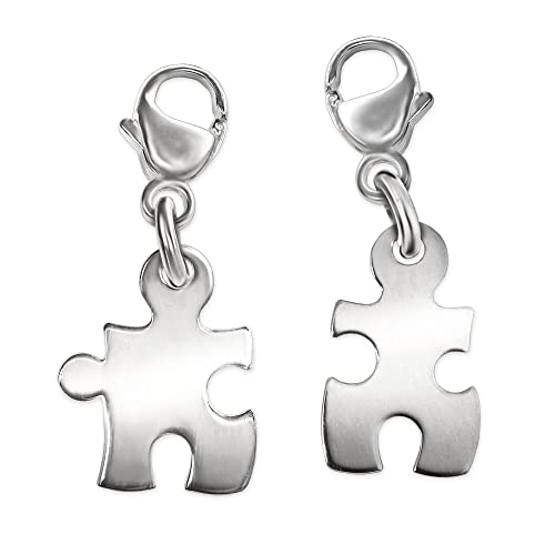 Ciondolo per la coppia o la migliore amica: due meravigliosi e piccoli braccialetti in argento a forma di puzzle (con moschettone per catene e braccialetti)