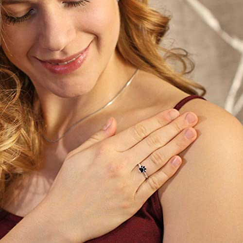 Anello da ragazza: circa 1,8 mm di larghezza con zampa di cagnolino per animali e amanti dei cani, laccato nero lucido