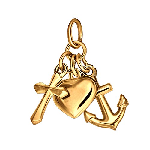 Set di gioielli in oro per donna o ragazzi: composto da un piccolo ciondolo con scritta in lingua tedesca "Glaube Liebe Hoffung", con passante di circa 20 mm e passante interno di 4 x 3 mm.