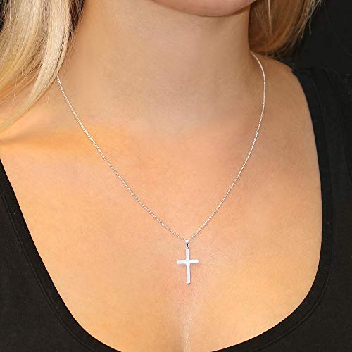 Ciondolo in argento e collana con maglia a barbazzale lucida, circa50 cm, croce e collana realizzate in argento sterling 925 e con marchio di autenticità.
