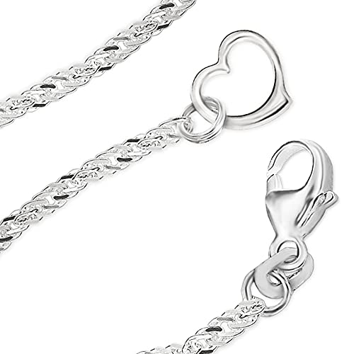 CLEVER SCHMUCK, elegante cavigliera argentata di tipo Singapore, da 25 o 27 cm, effetto attorcigliato con ciondolo libero a forma di piccolo cuore, lucido, in argento sterling 925