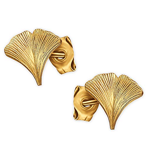 CLEVER SCHMUCK Orecchini da donna a forma di foglia di ginkgo 9 mm, in argento 925 placcato oro, con custodia bianca, Metallo