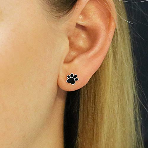 CLEVER SCHMUCK Piccoli orecchini a forma di zampa di cane, 7 mm, in argento sterling 925, laccato, colore: nero, Lucido, Zirconia cubica