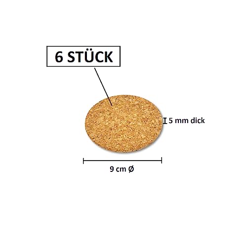 Cleverbrand Sottobicchiere di Sughero - Circa Ø 9 cm, 5 mm di Spessore - Kit con 6 Pezzi con recipiente