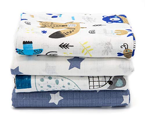 Clevere Kids set di 4 pannolini in mussola | 70x80 | doppio tessuto | certificati secondo lo standard STANDARD 100 da OEKO-TEX® (ragazzo)