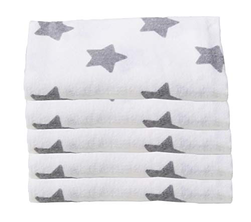 ClevereKids set di 5 pannolini in molton flanella, in cotone spazzolato, certificati secondo lo standard STANDARD 100 da OEKO-TEX®. (Star classic bianco-grigio)