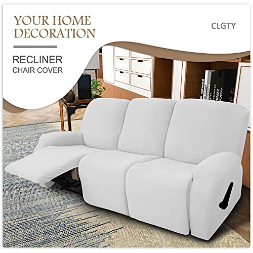 CLGTY 8 Pezzi Copripoltrona Relax Elasticizzato, Jacquard Spandex Fodera per Poltrona Antiscivolo Morbido Copridivano Lavabile Sofa Protettore per Soggiorno-Bianca-3 Posti
