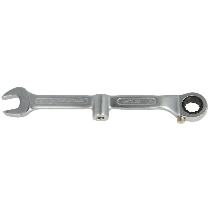 La chiave flash per la circolazione Rothenberger SW 17 x 19 è realizzato in acciaio cromato vanadio, timbratura abbassata, e dotato di angolo di cricca più piccolo, finemente dented, commutatore D/G grazie all'interruttore di pressione fermabile. La parte centrale offre alloggio per una vite M 10. La chiave è ideale per connessioni a vite difficili da raggiungere, per il montaggio veloce di lavabo e valvole ad angolo.