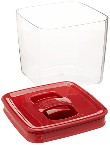 Click Clack Cube - Contenitore da 2 litri con coperchio rosso, plastica, Trasparente, 15.3 x 15.3 x 14.6 cm