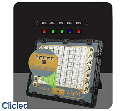 CLICLED Faro LED Solare 150W Faretto Esterno con Pannello Solare Esterno Indicatore Carica Alluminio Luce Fredda Clicled