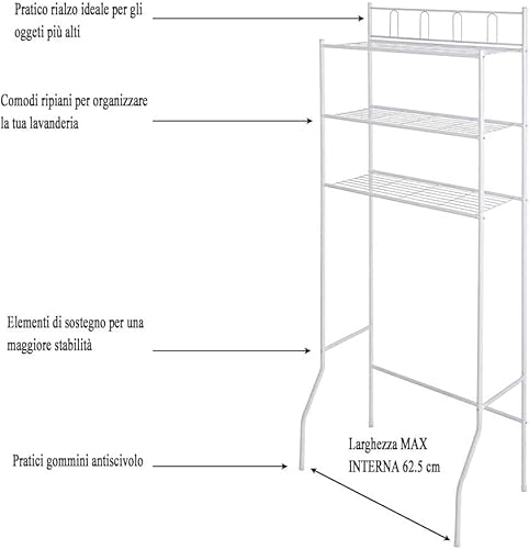 CLICLED YASTA Scaffale Bagno Lavatrice 155x65x25 Mobile 3 Ripiani Appoggio Bianco Salvaspazio