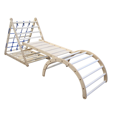 Dettagli del prodotto: Età: da 10 mesi a 6 anni Questo set di arrampicata per interni è composto da 3 parti: triangolo di arrampicata a 3 lati, arco di arrampicata e una tavola che può essere utilizzata su entrambi i lati e che combina uno scivolo e una scala per polli Facile da montare Aiuta i bambini a svilupparsi in modo giocoso, incoraggia il movimento e promuove allo stesso tempo l'equilibrio e la coordinazione Questo set è il modo ideale per far trascorrere ai bambini il tempo in casa in modo attivo e divertente. Il triangolo può essere utilizzato da tutti e 3 i lati: dal lato della scala, dal lato della rete e dal lato della parete di arrampicata Con le sue numerose varianti, il set offre un grande valore di gioco e può essere utilizzato da più bambini contemporaneamente. I prodotti Climb up Toys sono imballati e spediti senza plastica. Dimensioni e peso: Dimensioni (lunghezza x larghezza x altezza): 232 x 62 x 87cm Peso massimo consentito: 50 kg Materiale e cura: Materiale: compensato di betulla baltica certificato FSC da 12 mm e 18 mm, barre rotonde in legno di pioppo certificato FSC, corda intrecciata in PP-Multi. Istruzioni per la cura: il legno naturale non deve essere oliato! Se sui bastoni da arrampicata compaiono macchie fastidiose, possono essere facilmente eliminate con la carta vetrata in dotazione. Per farlo, passare delicatamente la carta a grana fine sulla zona interessata o sull'intero piolo. E non preoccupatevi, il divertimento per l'arrampicata è assicurato! La fornitura comprende: 1 x set da arrampicata Cheetah Cleo Avvertenze e istruzioni di sicurezza: Attenzione: i genitori devono tenere d'occhio i loro bambini quando utilizzano questo prodotto. Non lasciare i bambini incustoditi.