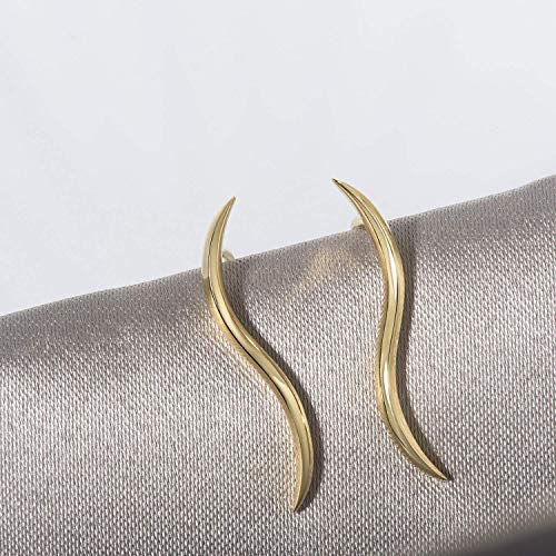 Gli orecchini climber orecchio sono formati in una semplice forma d'onda chic chic, sembra anche una foglia delicata, e lucidato a mano per renderlo brillante e luminoso come specchio, timbro con "925".
