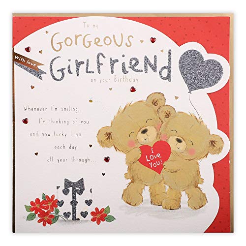 Clintons: Teddies Holding Heart Girlfriend Birthday Card 229 x 229 mm 1167228 multi