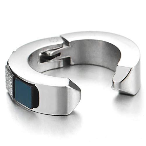 Clip-on Orecchini a Cerchio con Blu Bianco Quadrati Charms, Non-Piercing Orecchini da Uomo Donna, Acciaio