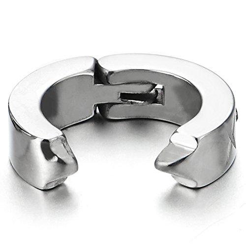 2 Clip-on Orecchini a Cerchio con Zirconi e Scanalato X, Non-Piercing Orecchini da Uomo Donna, Acciaio Inossidabile