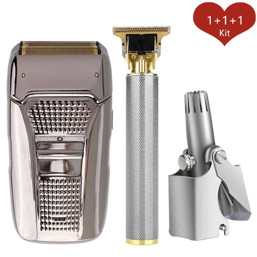 Men Clipper+Electric Shaver+Nose Hair Trimmer Set Cordless Hair Cutting Machine Beard Razor 0mm Barber Trimmers for Adults Kids