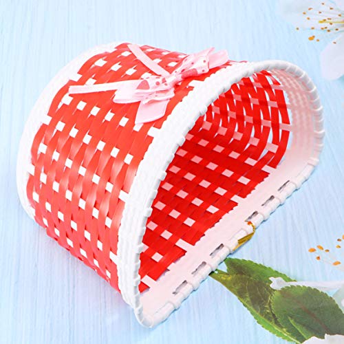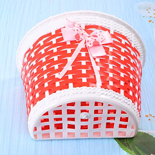 CLISPEED Bicicletta Scooter Basket Bambini Bike Basket Plastica Knitted Bow Knot Anteriore Borsa Fatta a Mano (Piccolo, Cestino Rosso, Campanello di Colore campanella)