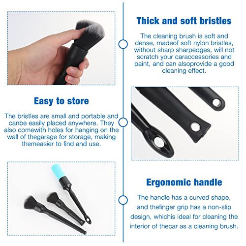 [Set di Pennelli per Dettagli Automatici] - Il pennelli detailing auto include 3 pennelli di diverse dimensioni, il piccolo pennello per la pulizia può pulire punti difficili da raggiungere e il grande pennello per la pulizia può rimuovere la polvere dall'esterno;