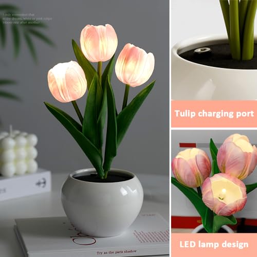 CLIUNT Tulip Night Light, Mirror Tulip Lamp, Tulipano Luce notturna con vaso in ceramica Simulazione Tulipano Led Luci, Decorazioni per la casa Regali di compleanno per gli amic