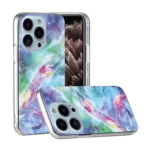 CLM-Tech Cover Compatibile con Apple iPhone 13 PRO Max, Custodia in Silicone TPU Case, Marmo Cielo Stellato Blu Multicolore