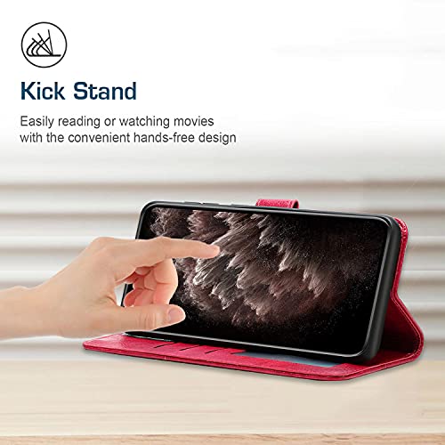 CLM-Tech Cover Compatibile con Apple iPhone 13 PRO Max, Sintetica Pelle Custodia, Portafoglio con Funzione Supporto e Slots, Bella Donna Farfalle, Rosso