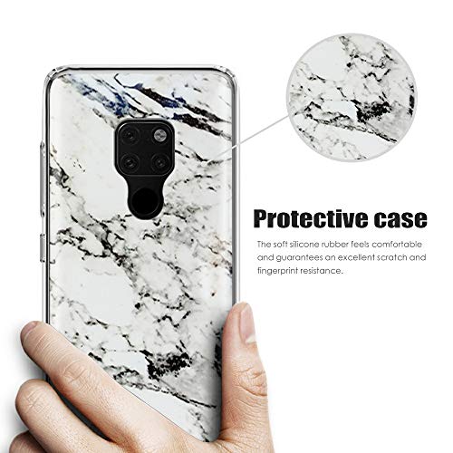 CLM-Tech Cover Compatibile con Huawei Mate 20, 3X Custodia in Silicone TPU, Case 3in1 Set, Marmo Bianco Nero Multicolore