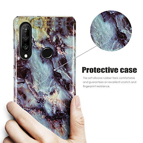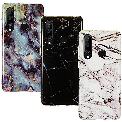 CLM-Tech Cover 3X Compatibile con Huawei P30 Lite, Custodia in Silicone TPU, Case 3in1 Set, Marmo Nero Bianco Multicolore
