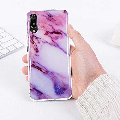 CLM-Tech Cover 3X Compatibile con Huawei Y6 2019, Custodia in Silicone TPU, Case 3in1 Set, Marmo Rosa Porpora Turchese