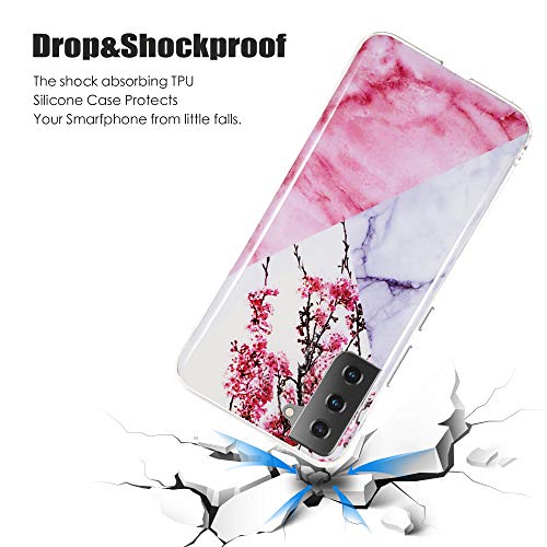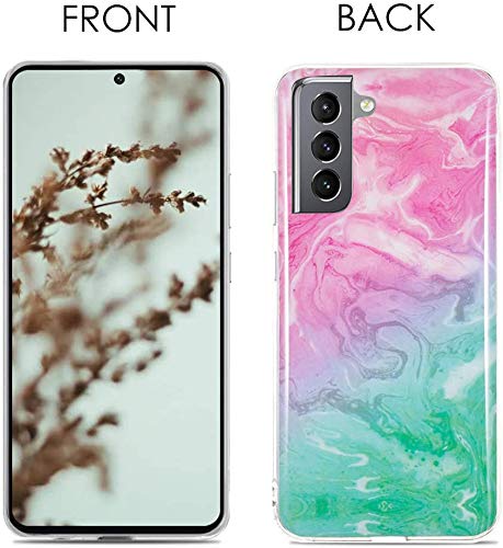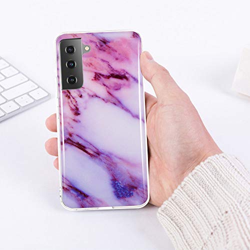 CLM-Tech Cover 3X Compatibile con Samsung Galaxy S21 Plus, Custodia in Silicone TPU, Case 3in1 Set, Marmo Rosa Porpora Turchese