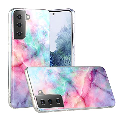 CLM-Tech Cover Compatibile con Samsung Galaxy S21, Custodia in Silicone TPU Case, Marmo Cielo Stellato Rosa Viola Multicolore
