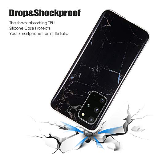 CLM-Tech Cover 3X Compatibile con Samsung Galaxy S20 Plus, Custodia in Silicone TPU, Case 3in1 Set, Marmo Nero Bianco Multicolore