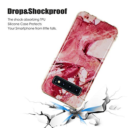 CLM-Tech Cover 3X Compatibile con Samsung Galaxy S10, Custodia in Silicone TPU, Case 3in1 Set, Marmo Rosa Porpora Multicolore