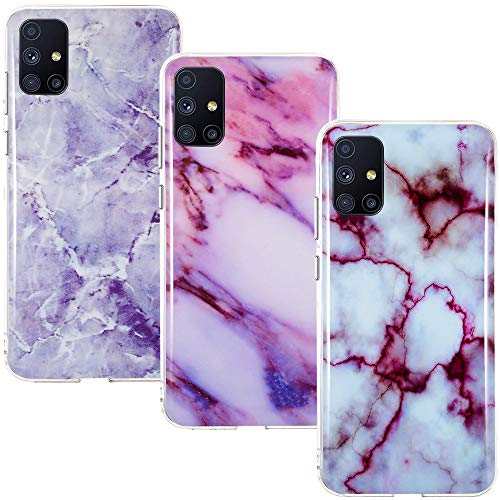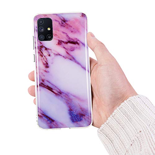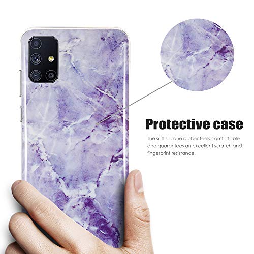 CLM-Tech Cover 3X Compatibile con Samsung Galaxy M51, Custodia in Silicone TPU, Case 3in1 Set, Marmo Porpora Bianco Multicolore