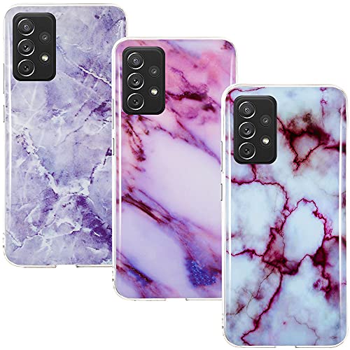 CLM-Tech Cover 3X Compatibile con Samsung Galaxy A72, Custodia in Silicone TPU, Case 3in1 Set, Marmo Porpora Bianco Multicolore