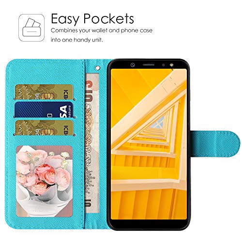 CLM-Tech Cover Compatibile con Samsung Galaxy A6 2018, Sintetica Pelle Custodia, Portafoglio con Funzione Supporto e Slots, Lupo Montagna di Neve Blu