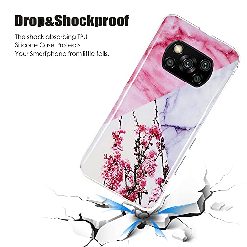 CLM-Tech Cover 3X Compatibile con Xiaomi Poco X3 NFC/Poco X3 PRO, Custodia in Silicone TPU, Case 3in1 Set, Marmo Rosa Porpora Turchese