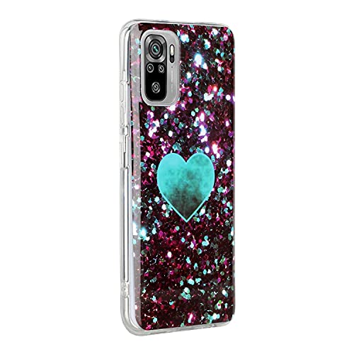 CLM-Tech Cover Compatibile con Xiaomi Redmi Note 10 / Note 10S, Custodia in Silicone TPU Case, Luccichio Cuore Turchese Nero Multicolore