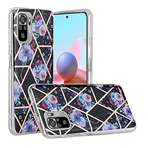 CLM-Tech Cover Compatibile con Xiaomi Redmi Note 10 / Note 10S, Custodia in Silicone TPU Case, Marmo Motivo Geometrico, Fiore Nero