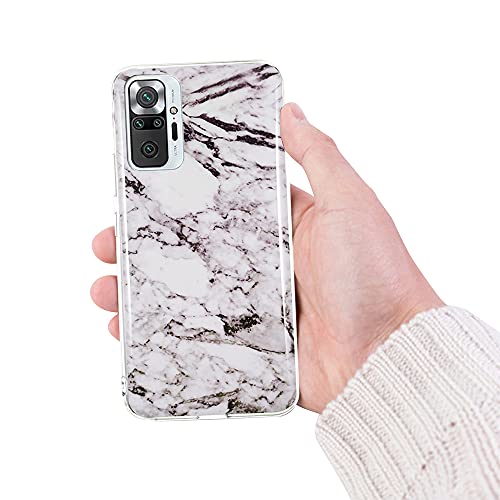 CLM-Tech Cover 3X Compatibile con Xiaomi Redmi Note 10 PRO, Custodia in Silicone TPU, Case 3in1 Set, Marmo Nero Bianco Multicolore