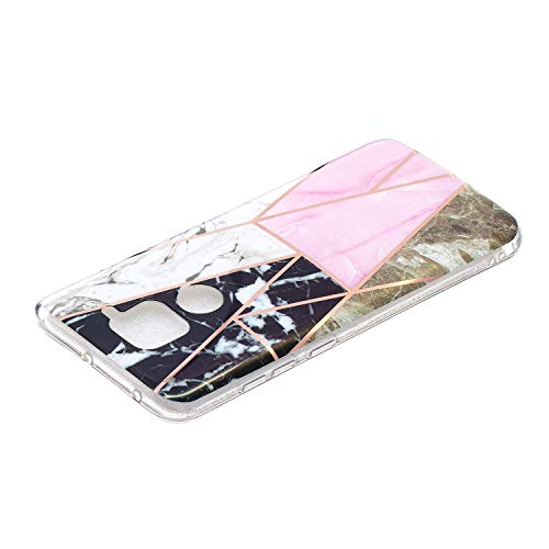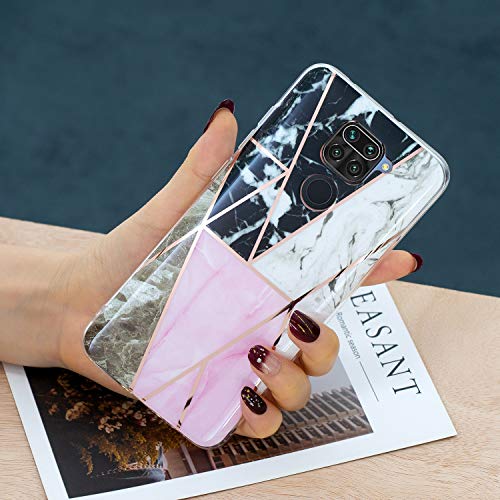 CLM-Tech Cover Compatibile con Xiaomi Redmi Note 9, Custodia in Silicone TPU Case, Marmo Motivo Geometrico, Nero Bianco Rosa