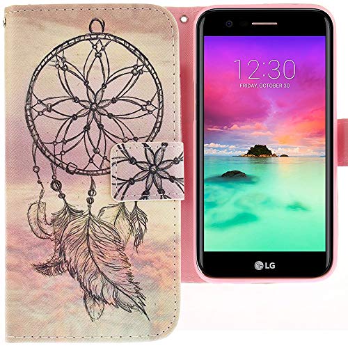CLM-Tech PU Pelle Custodia con Funzione Supporto per LG K10 (2017) Flip Case Acchiappa Sogni Rosa/Grigio