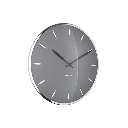 W - Wall Clock Leaf Dark Grey, Dome Glass D.40 cm, H.4 cm, Ex. AA Batt, design Boxtel & Buijs