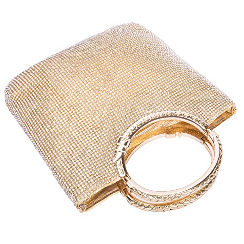 CLOCOLOR Borsa Pochette a mano delle donne con diamanti cristalli luminosi borsetta con manici stile elegante con ampio spazio borsa festa sacchetto di sera, Dorato
