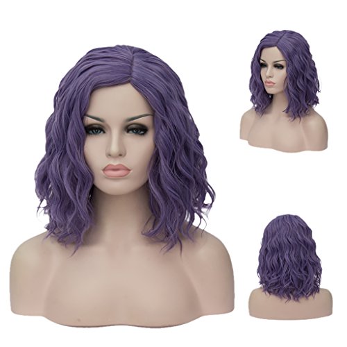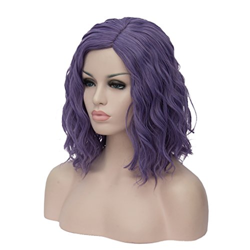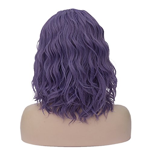CLOCOLOR 35CM Parrucche Da Donna Mossi Corto Capelli Sintetici Naturale Sintetico Parrucca Veri Resistente al Calore Cosplay Club Halloween Viola