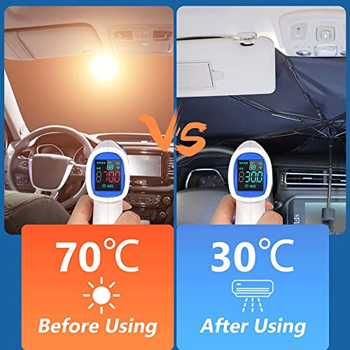 【FACILE DA PIEGARE E CONSERVARE】 Il parasole per parabrezza per auto stile ombrello funziona proprio come il tuo normale ombrello, molto facile da aprire e piegare in pochi secondi. Grazie alla custodia compatta in pelle, può entrare nelle tasche della portiera della tua auto o nel vano portaoggetti.